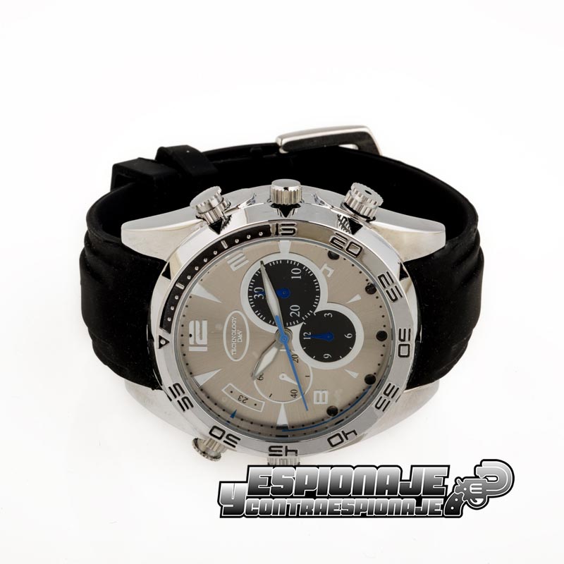 Posado en diferentes lugares el reloj espía puede ser usado como una cámara estratégica y absolutamente indetectable.